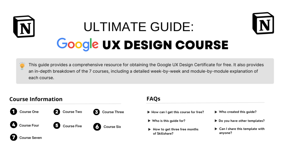 This guide provides a comprehensive resource for obtaining the Google UX Design Certificate for free. It also provides an in-depth breakdown of the 7 courses, including a detailed week-by-week and module-by-module explanation of each course.